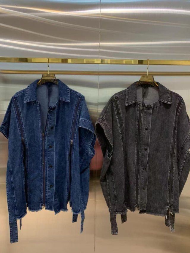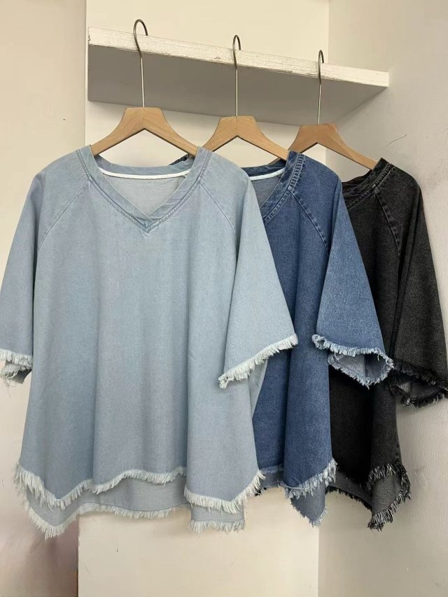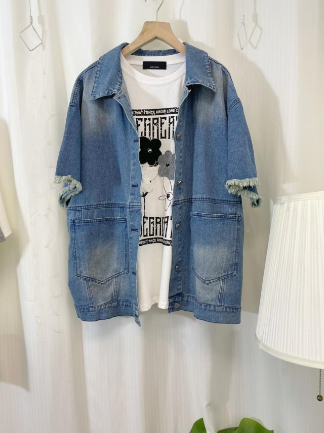🇰🇷BU07 心型牛仔章暗紋開叉TOP(2色)