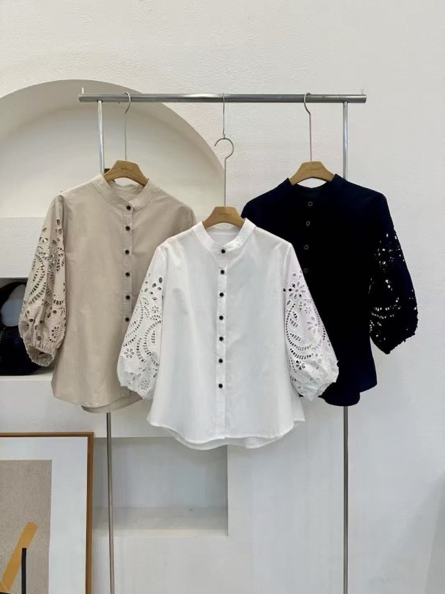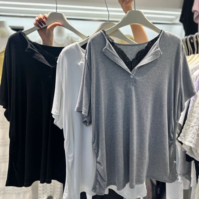 🇰🇷BU08 通花手袖排鈕恤(3色)