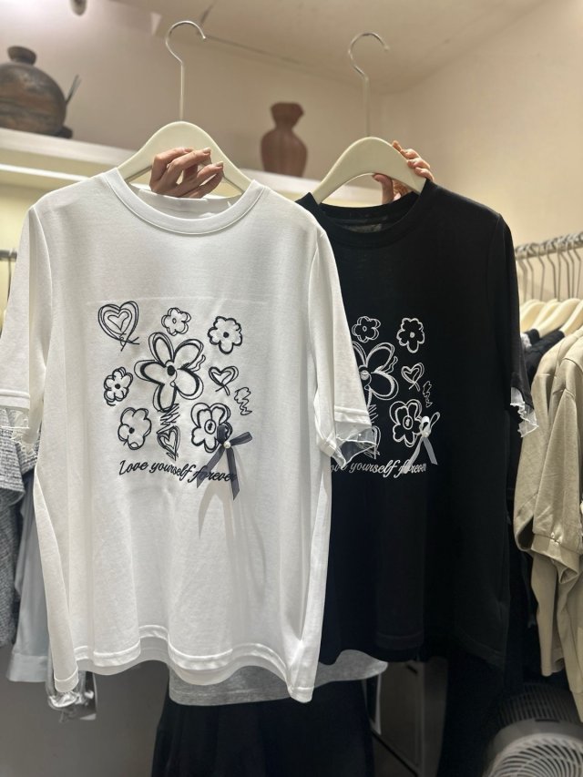 🇰🇷NO10 LOVE 刺繡字木耳捲邊TOP(4色)