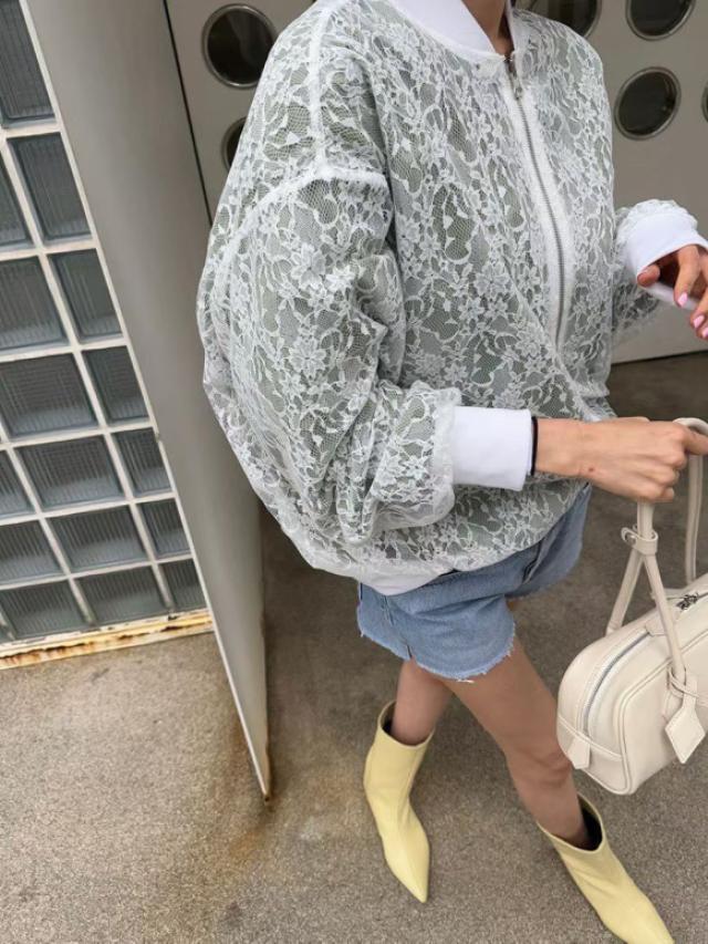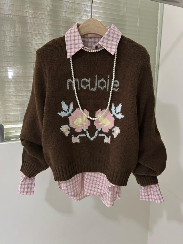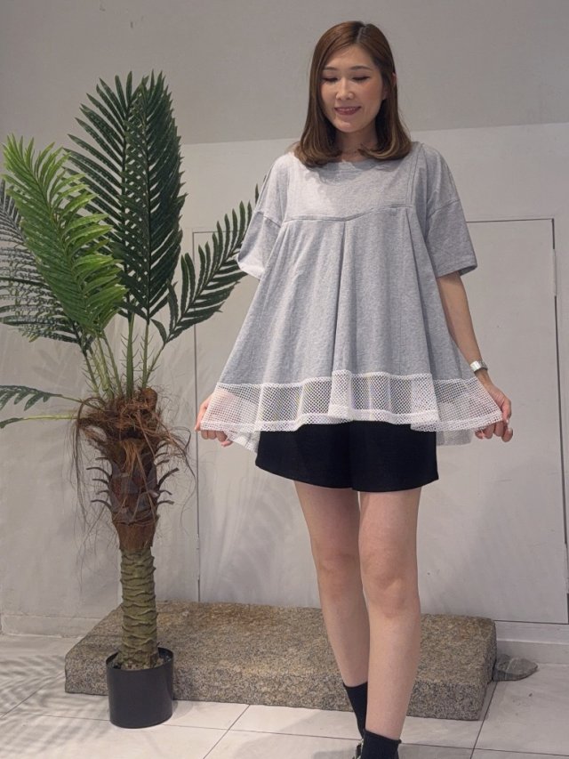 🇰🇷WS12 小V領字母通花TOP(花灰)