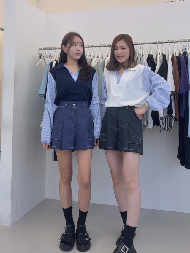 🇰🇷NO02 MM風反領條子手袖假兩件TOP(2色)