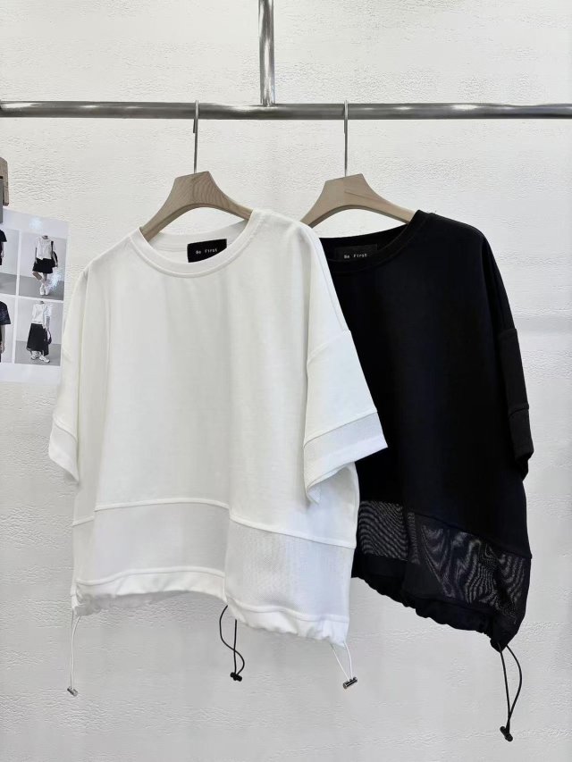 🇰🇷BE34 手袖虛線TOP(黑色)