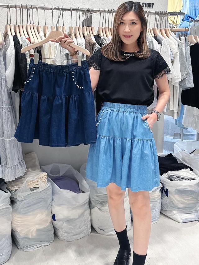 🇰🇷WS07 珍珠牛仔短裙(只有淺藍色)