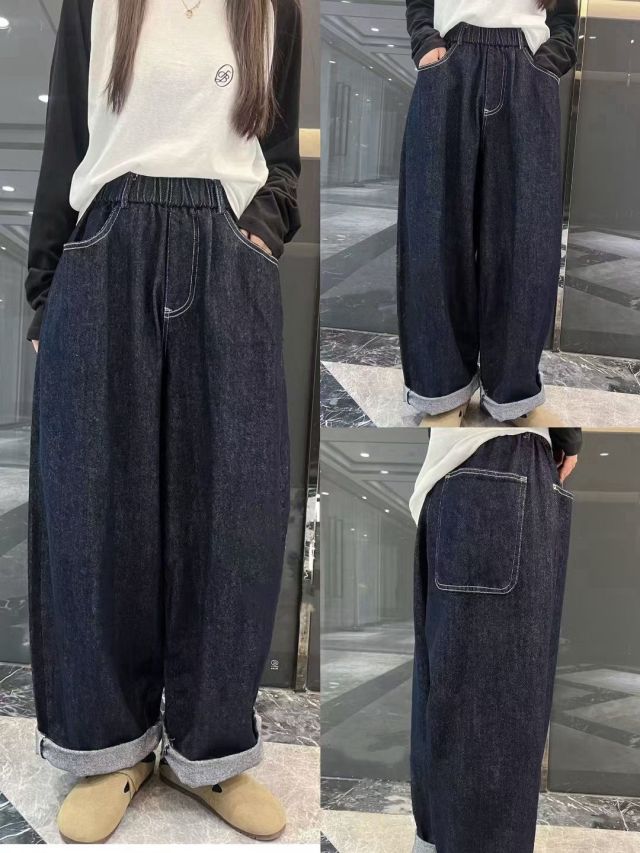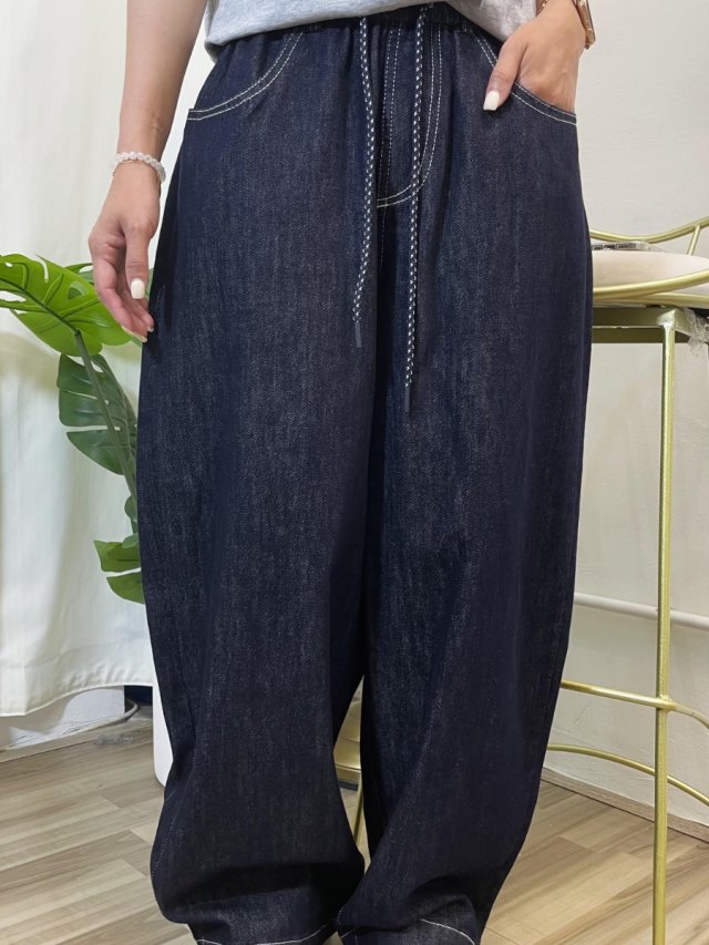 🇰🇷HU222 牛仔籃全橡筋束腰牛仔闊褲