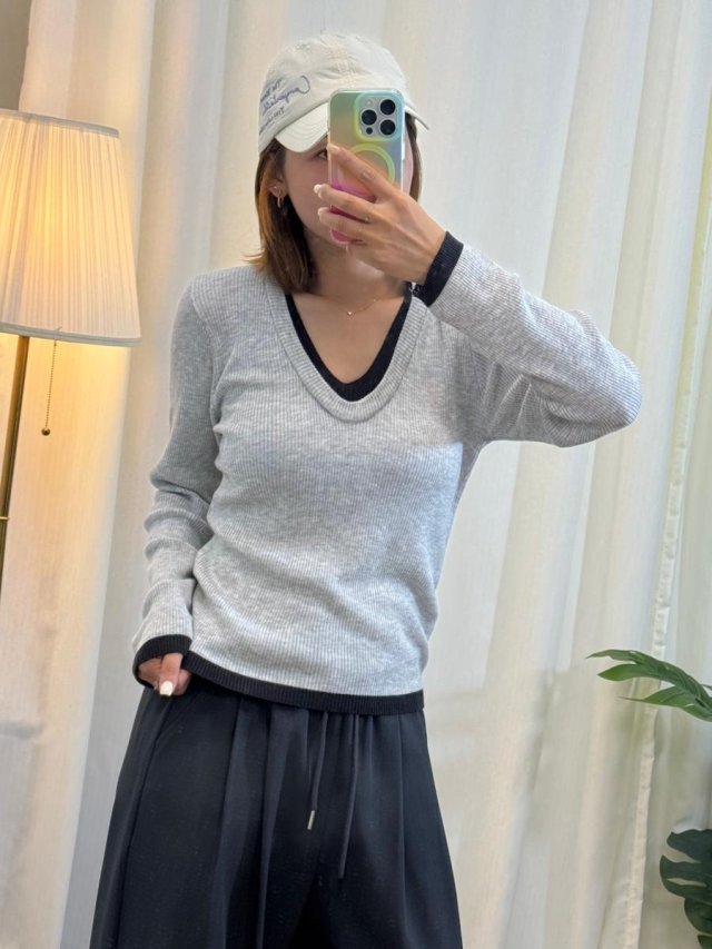 🇰🇷HU229 假兩件V領坑紋Top(4色)