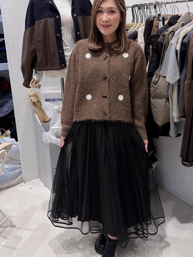 🇰🇷MO26 刺繡花牛角鈕冷衫(3色)