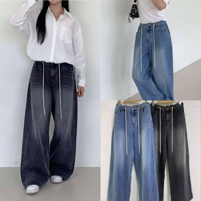 🇰🇷FW07 束腰洗水牛仔闊褲(2色)