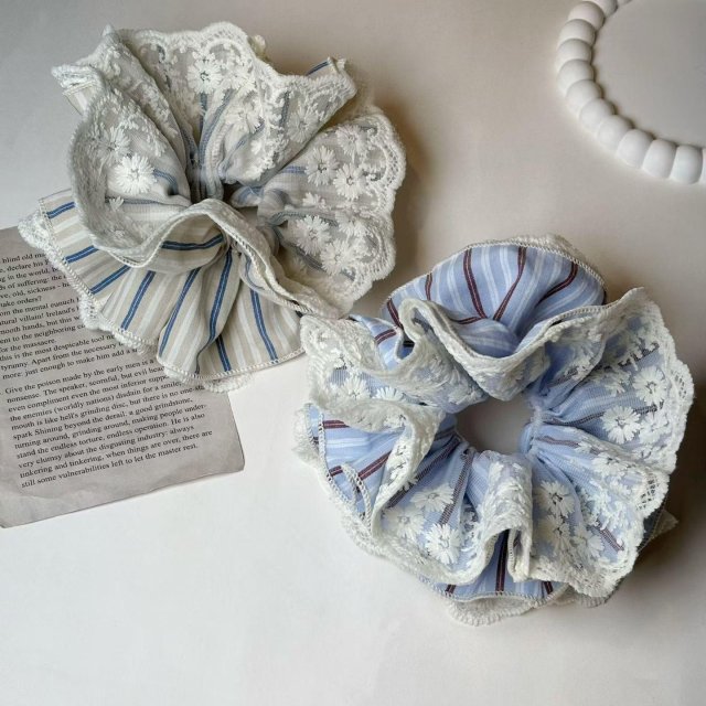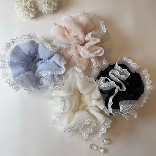 🇰🇷AC04 新款✨春天雪紡蕾絲邊 髮圈(4色)