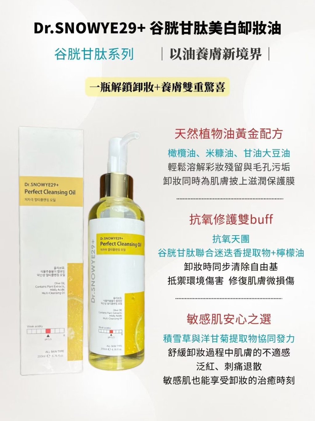 🇰🇷DR08 Dr. Snowye 29+ Perfect Cleansing Oil 穀胱甘肽卸妝油 200ML
