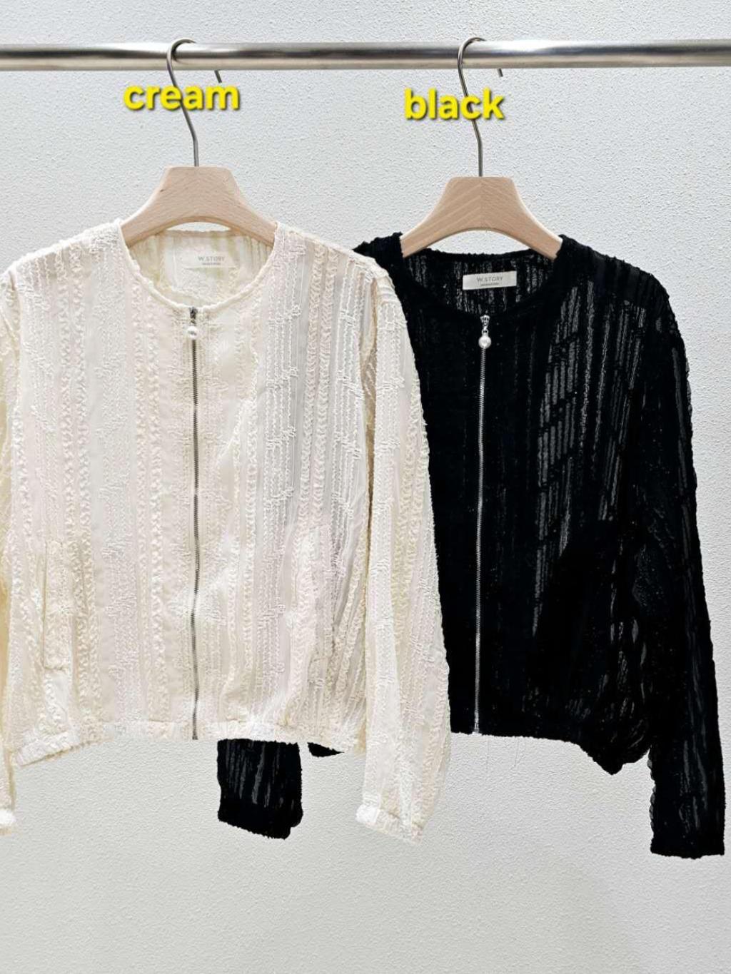 🇰🇷WS58 暗紋珍珠拉鍊外套(2色)💞1/10 今晚付款全場混疊滿6件包順豐站/櫃💞