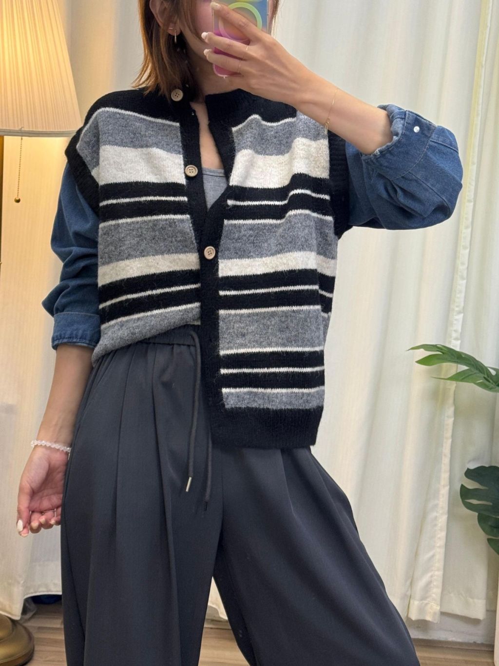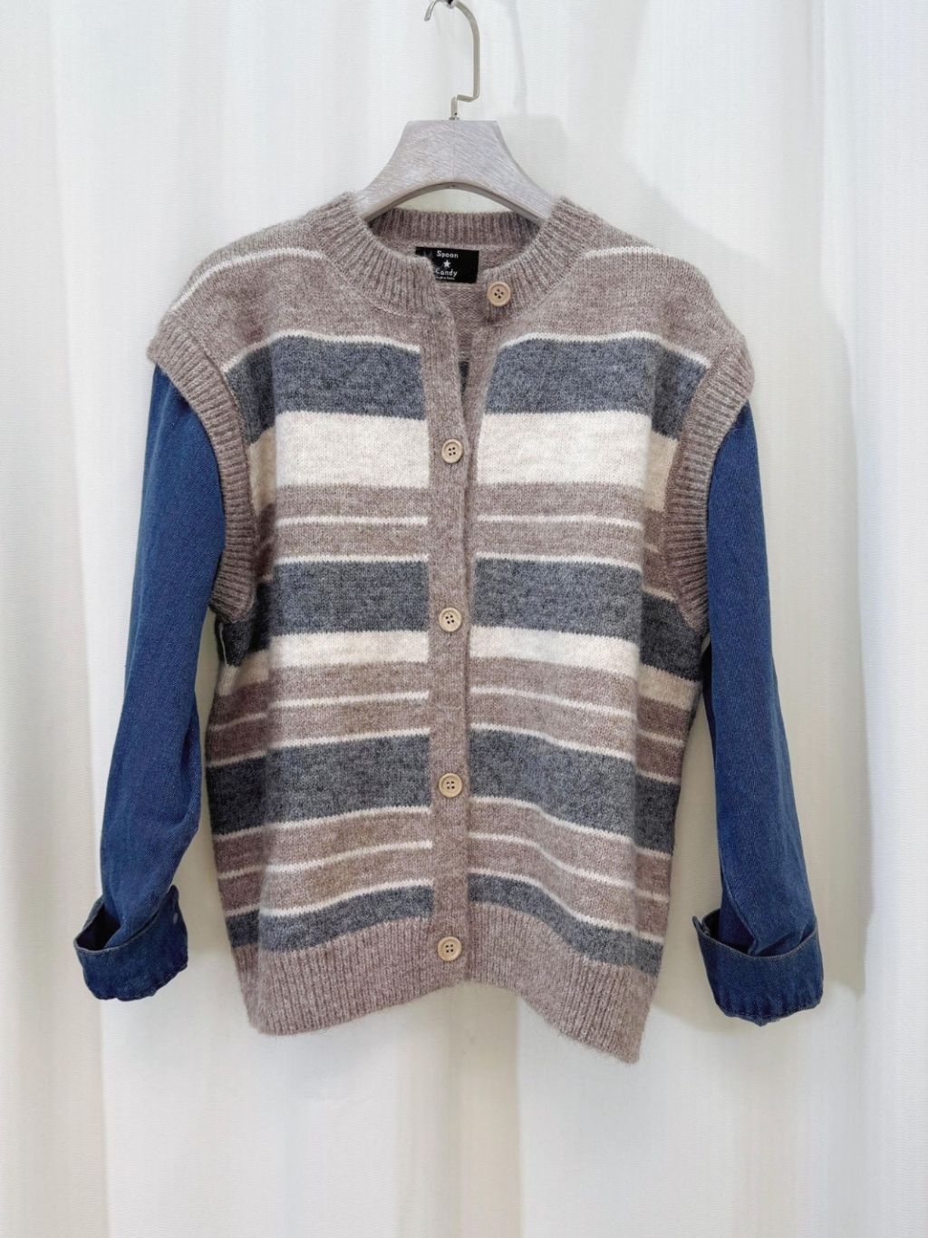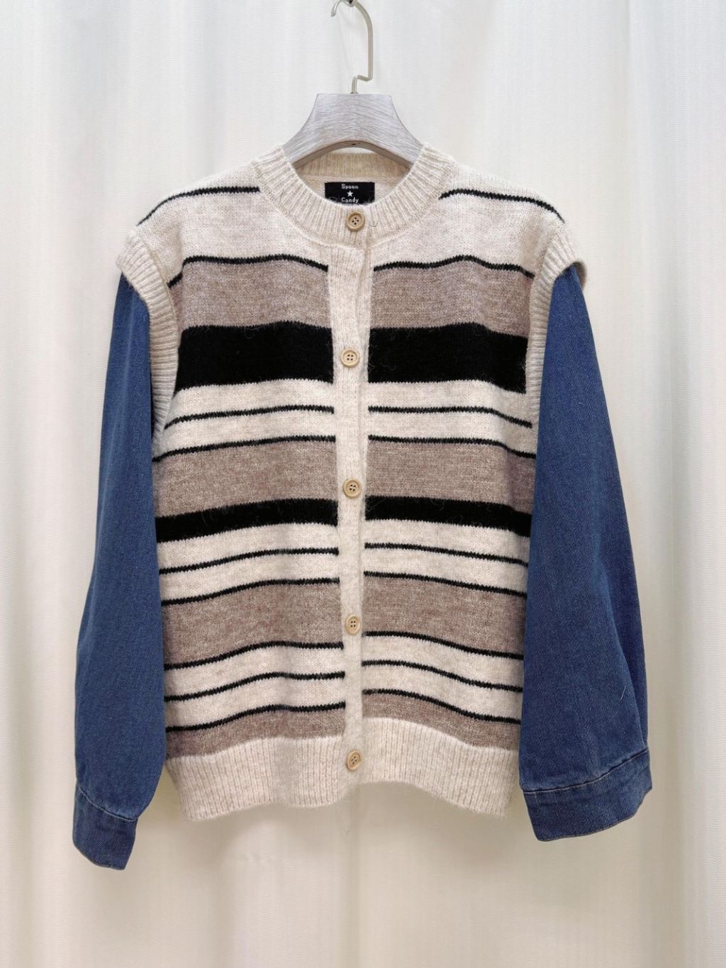 🇰🇷HU32 假兩件牛仔手袖橫間TOP(3色)
