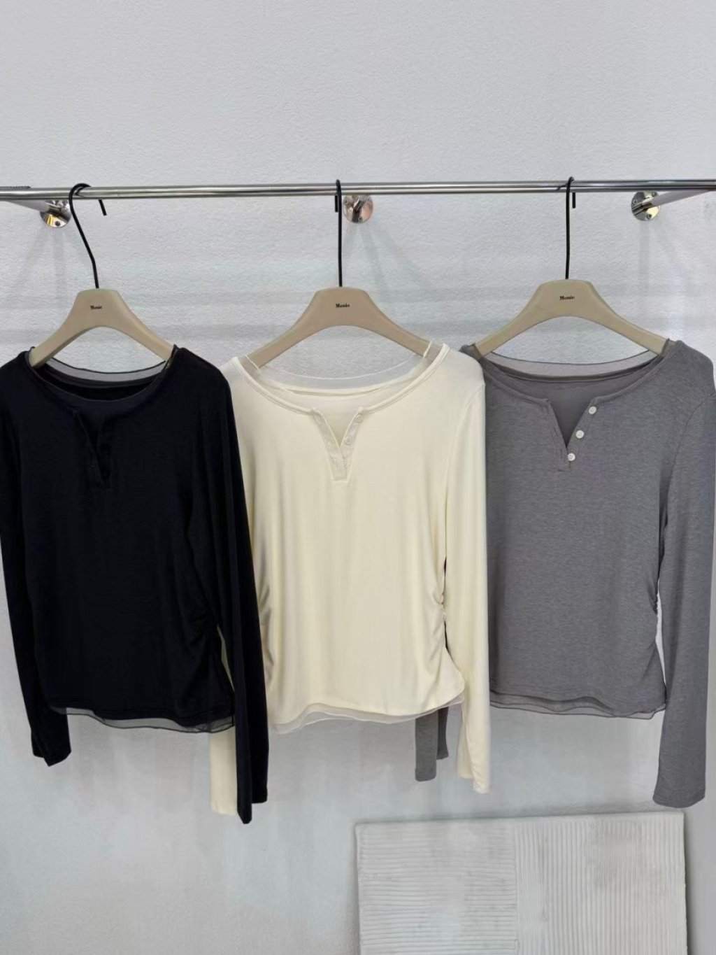 🇰🇷MO11 假兩件鈕扣V領Top(3色)