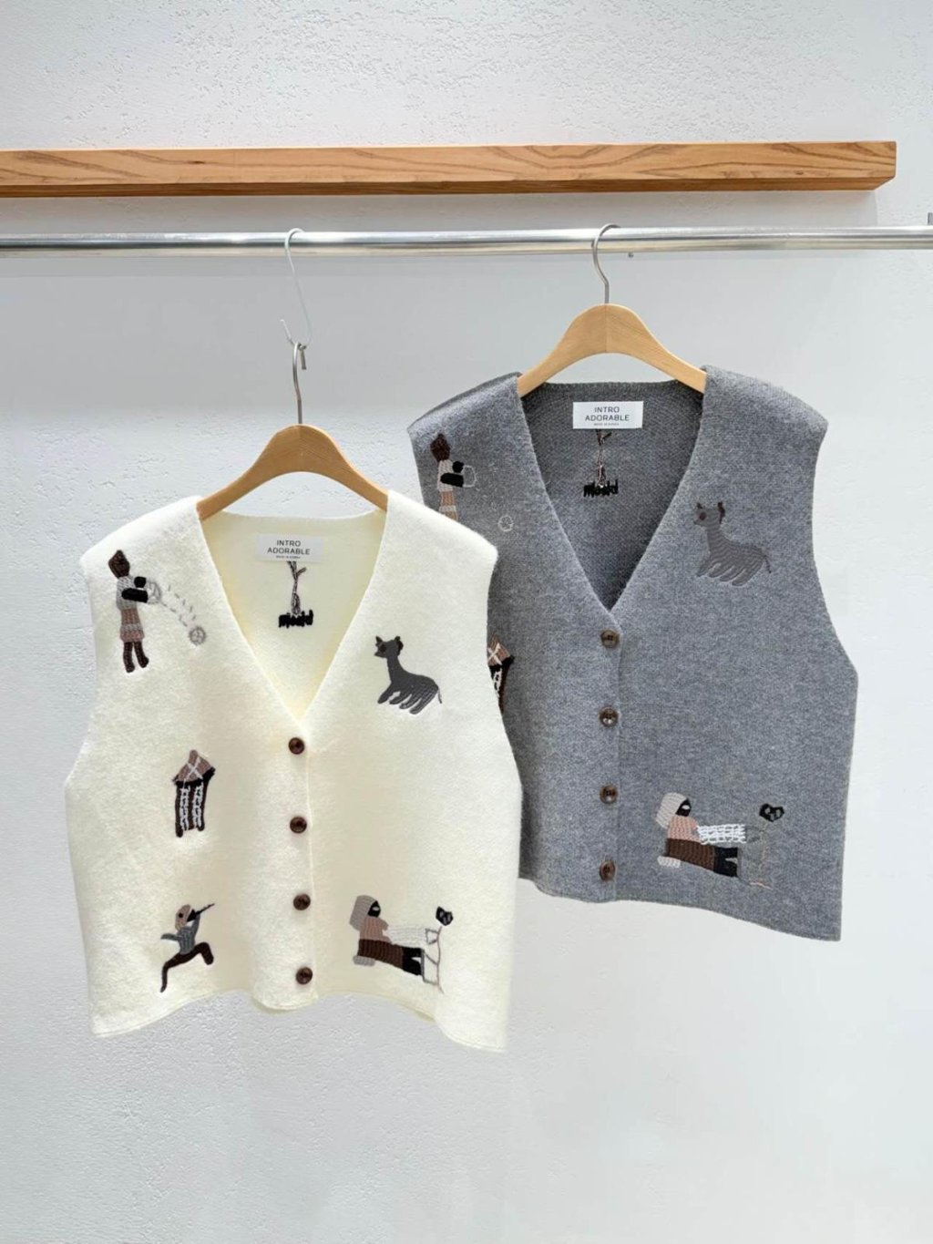 🇰🇷AD37 刺繡圖案排鈕背心(2色)