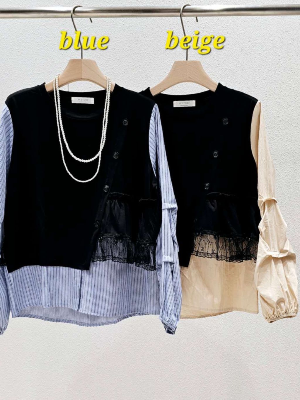🇰🇷WS10 假兩件排鈕拼恤(2色)