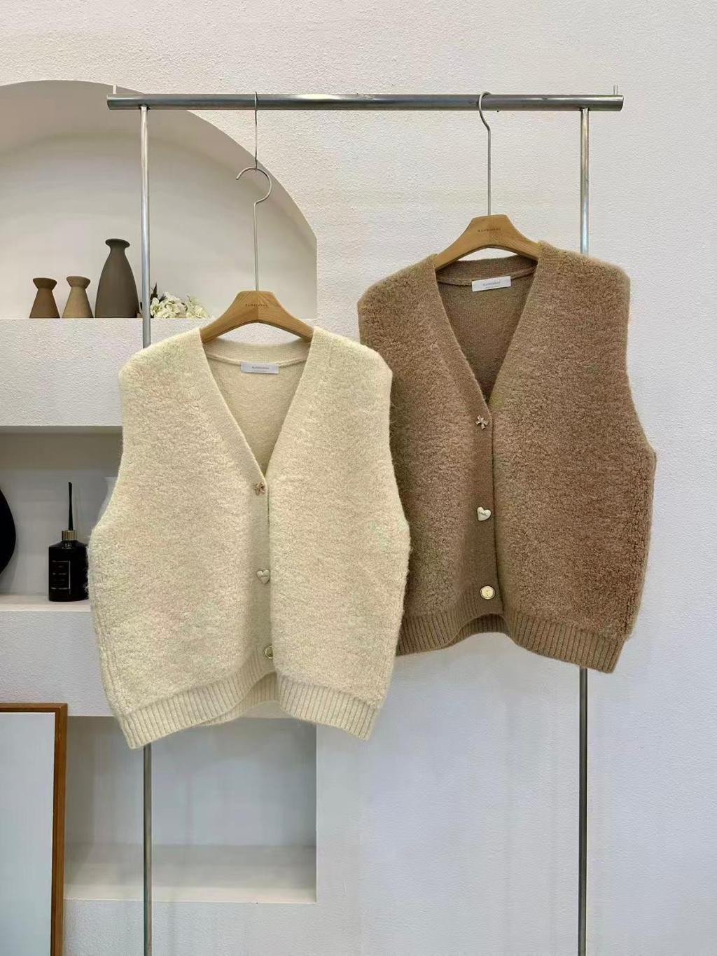 🇰🇷BU07 蝴蝶心心鈕扣毛毛背心(2色)