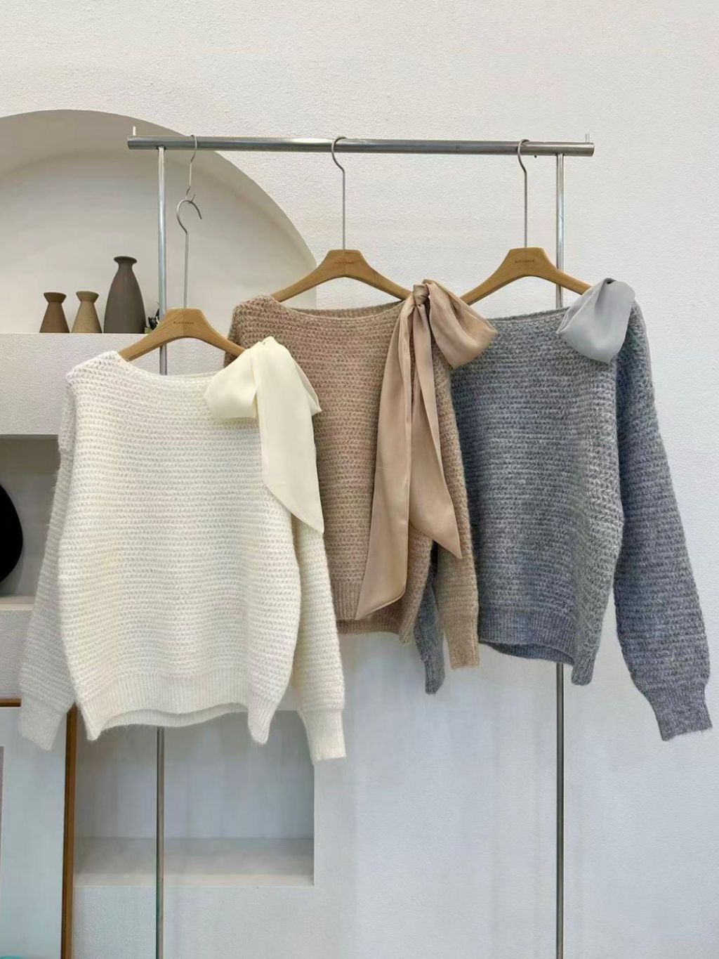 🇰🇷BU08 綁蝴蝶結一字膊冷衫(3色)