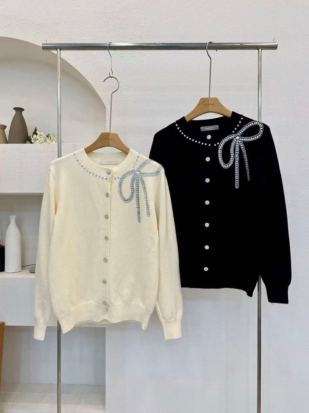🇰🇷BU09 蝴蝶結閃石綑邊針織TOP(2色)