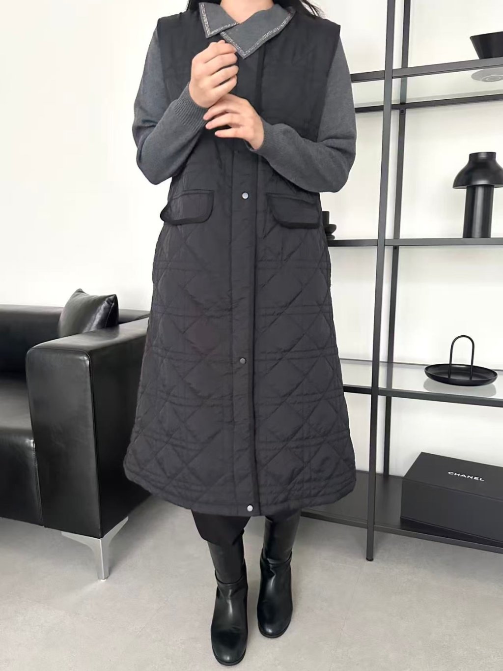 🇰🇷BU17 菱格紋夾棉長外套(2色)