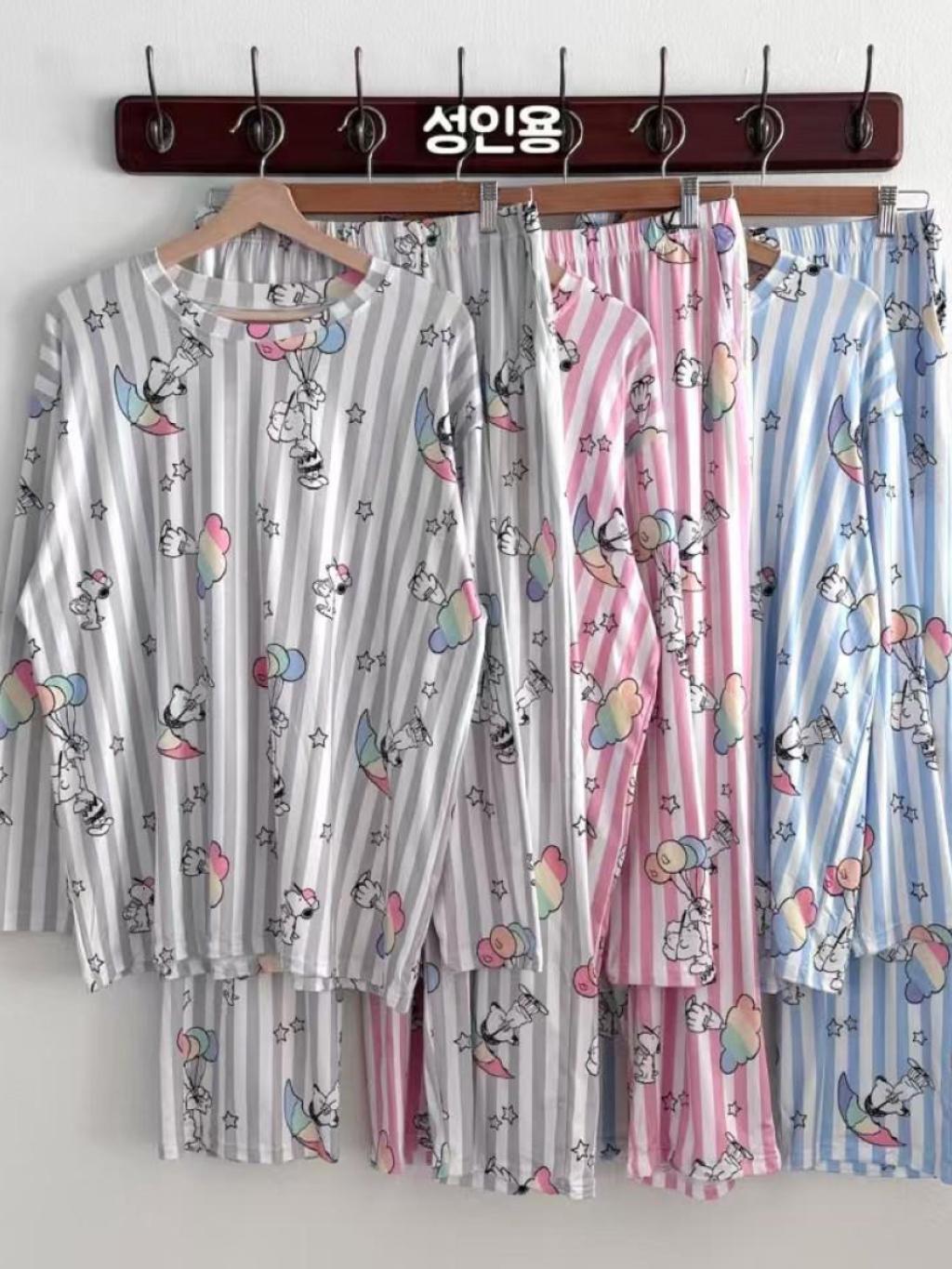 主頁 🇰🇷DI34 Charlie Brown汽球條紋睡衣套裝(3色) 🌟混場買5件以上包順豐站/櫃🌟