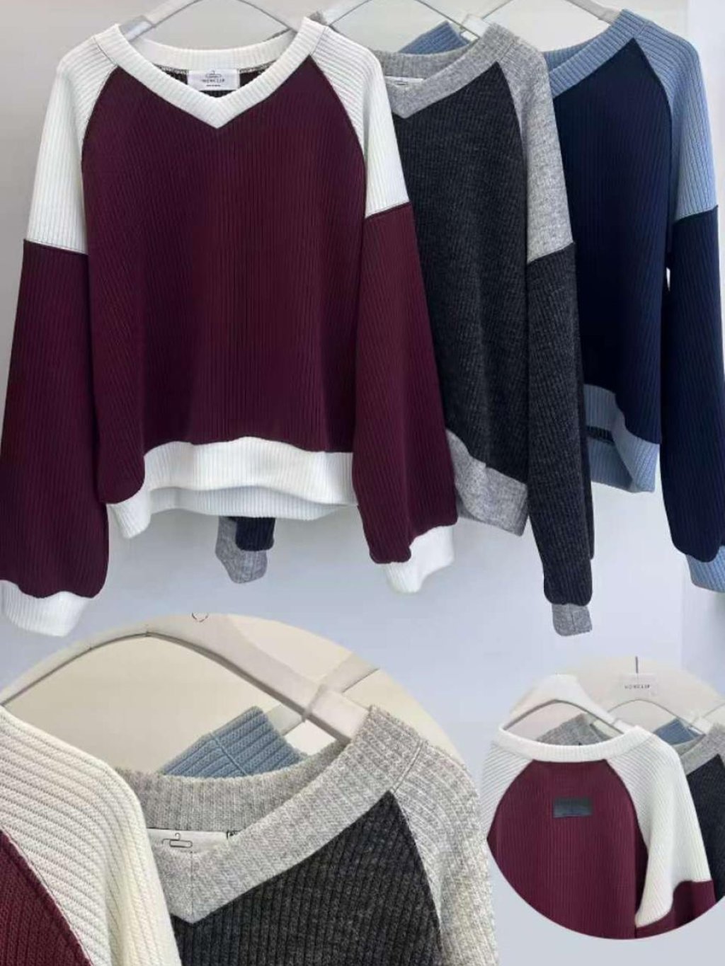 🇰🇷NO01 小V領撞色暗紋TOP(3色)