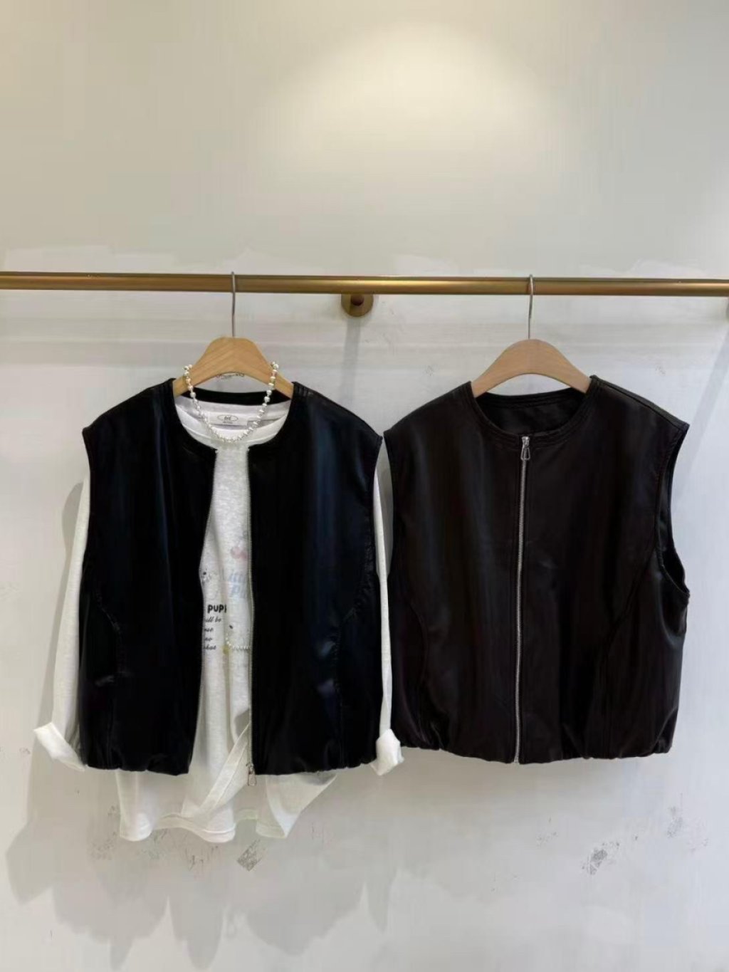 🇰🇷MO30 素皮拉鍊背心外套(2色)
