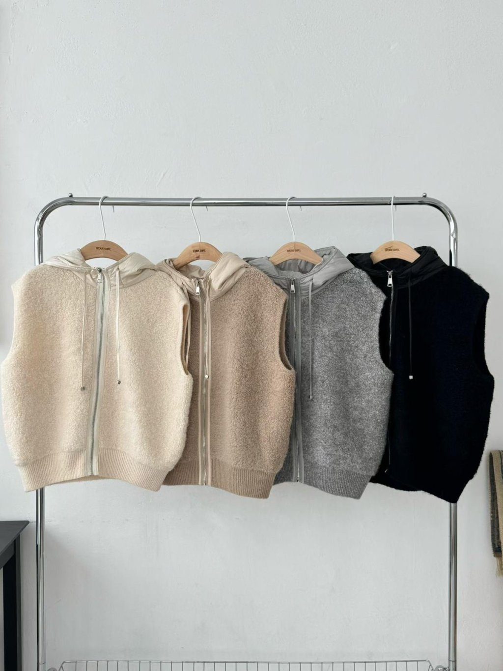 🇰🇷SG01 有帽毛毛拉鍊背心外套(3色)