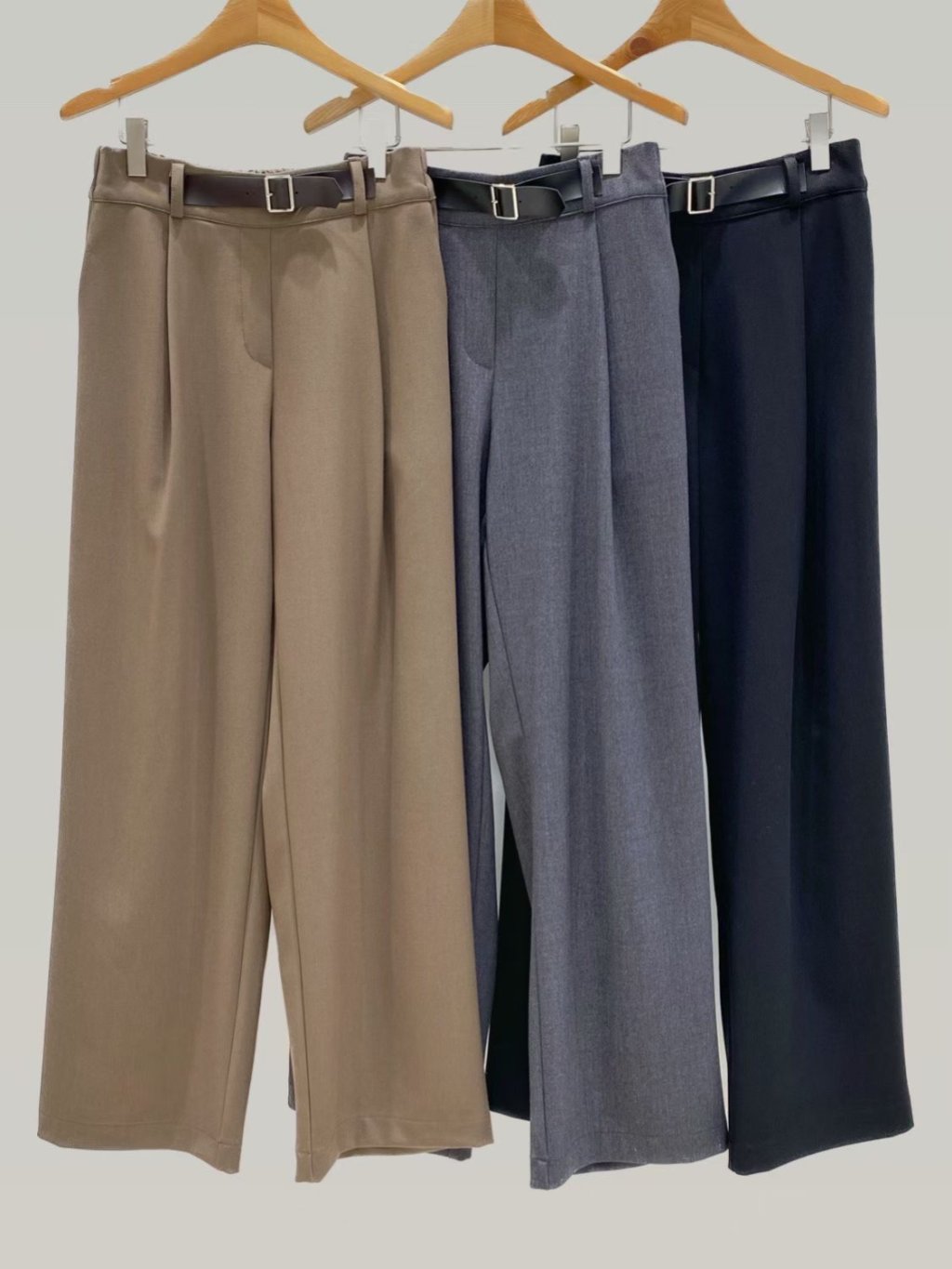 🇰🇷NE04 褶骨連Belt直腳褲(3色)