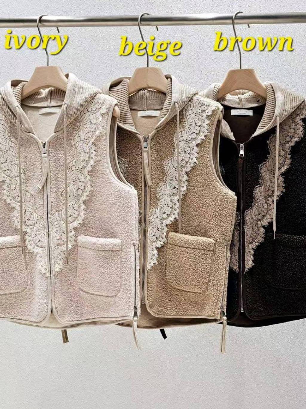🇰🇷WS24 喱士有帽羊羔毛背心外套(3色)