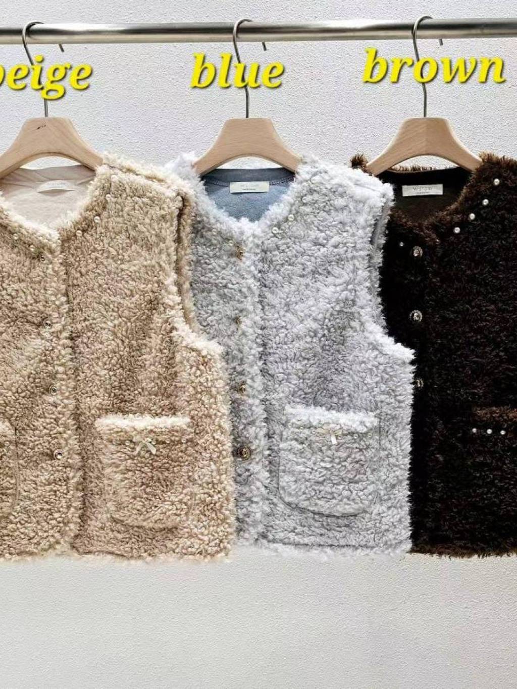🇰🇷WS30 雙袋蝴蝶結珍珠毛毛背心外套(3色)🔥福利價不參與減錢優惠🔥