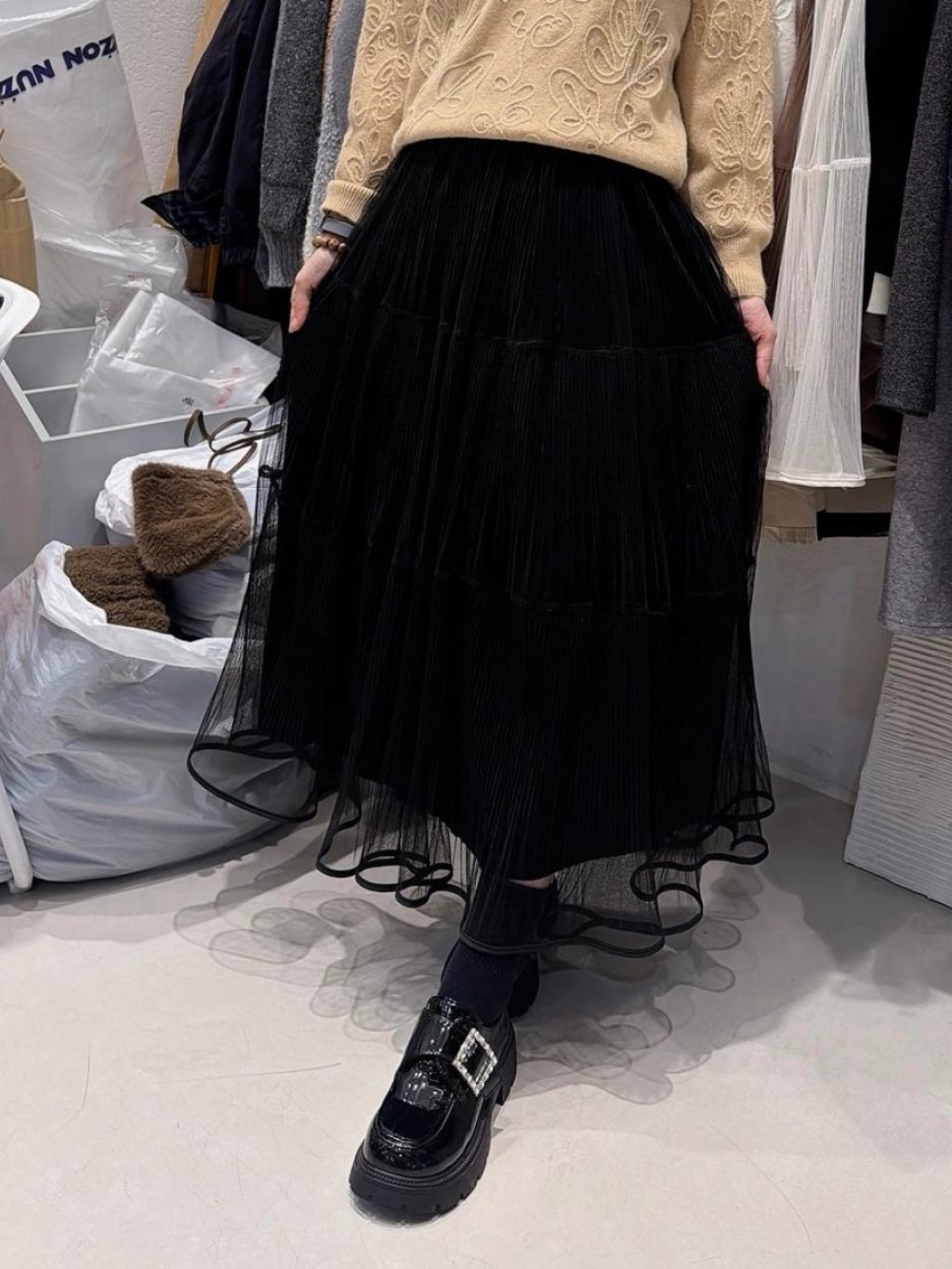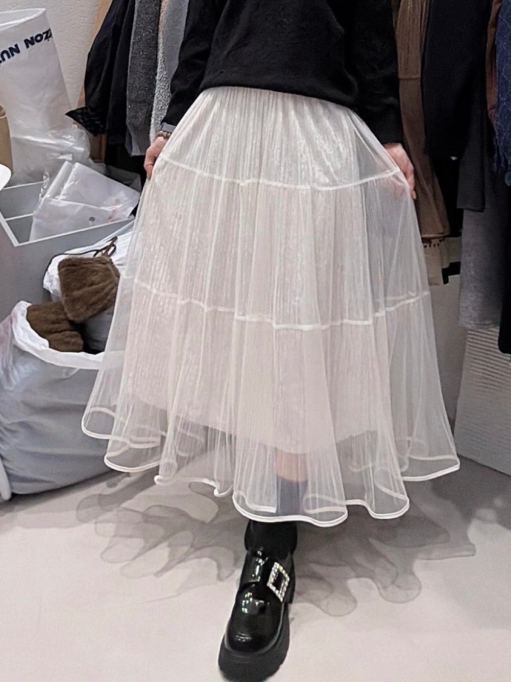 🇰🇷MO45 百褶Ruffle紗裙(3色)