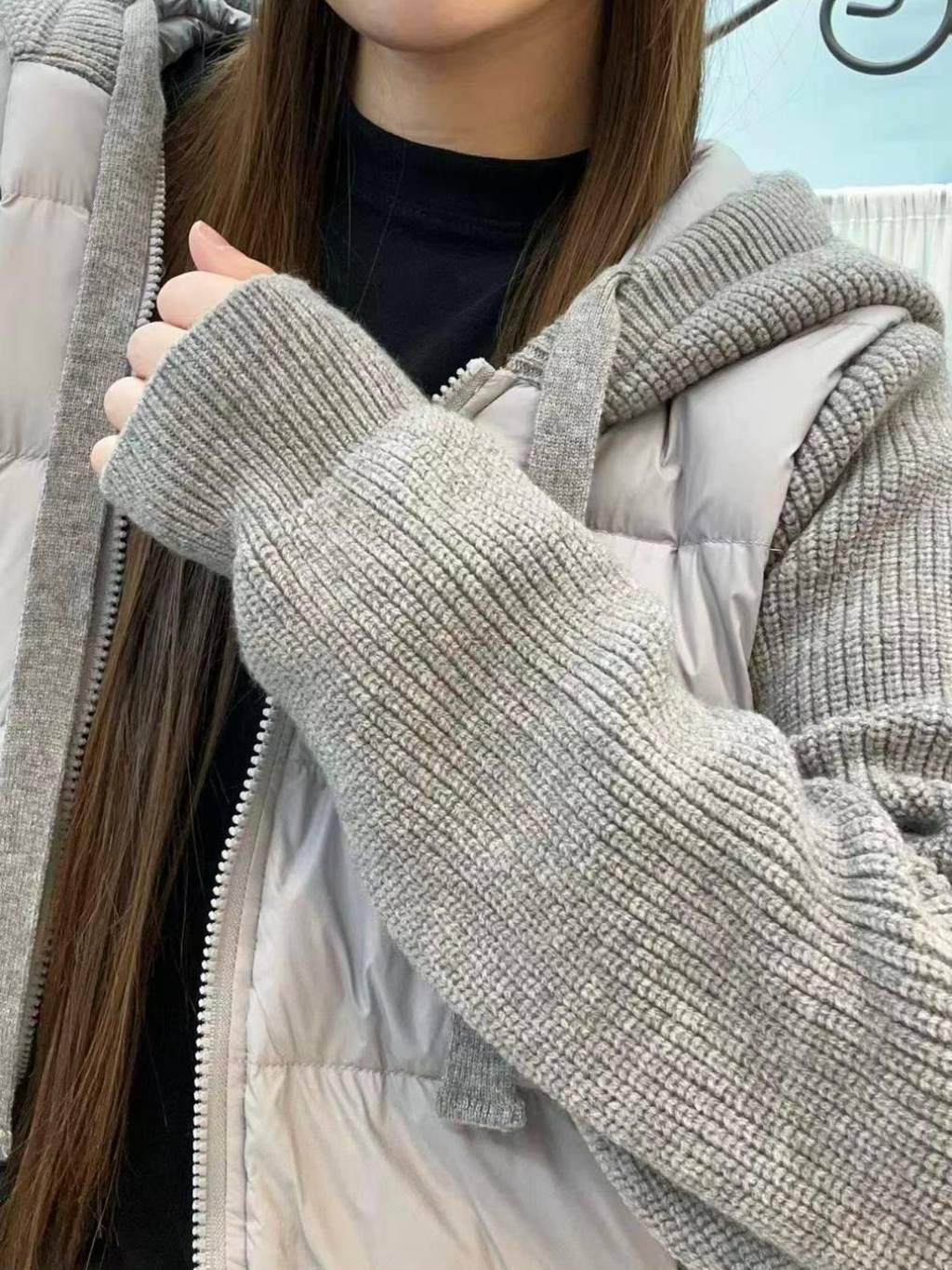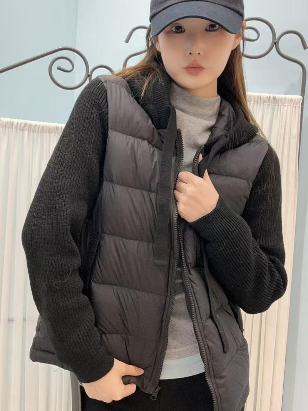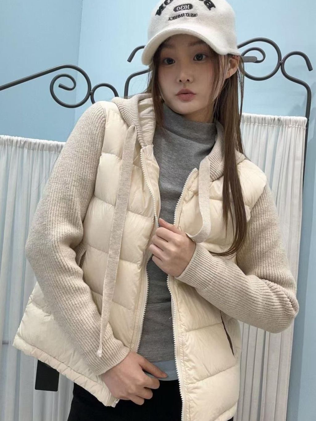 🇰🇷HU85 羽絨拼針織有帽外套(3色)