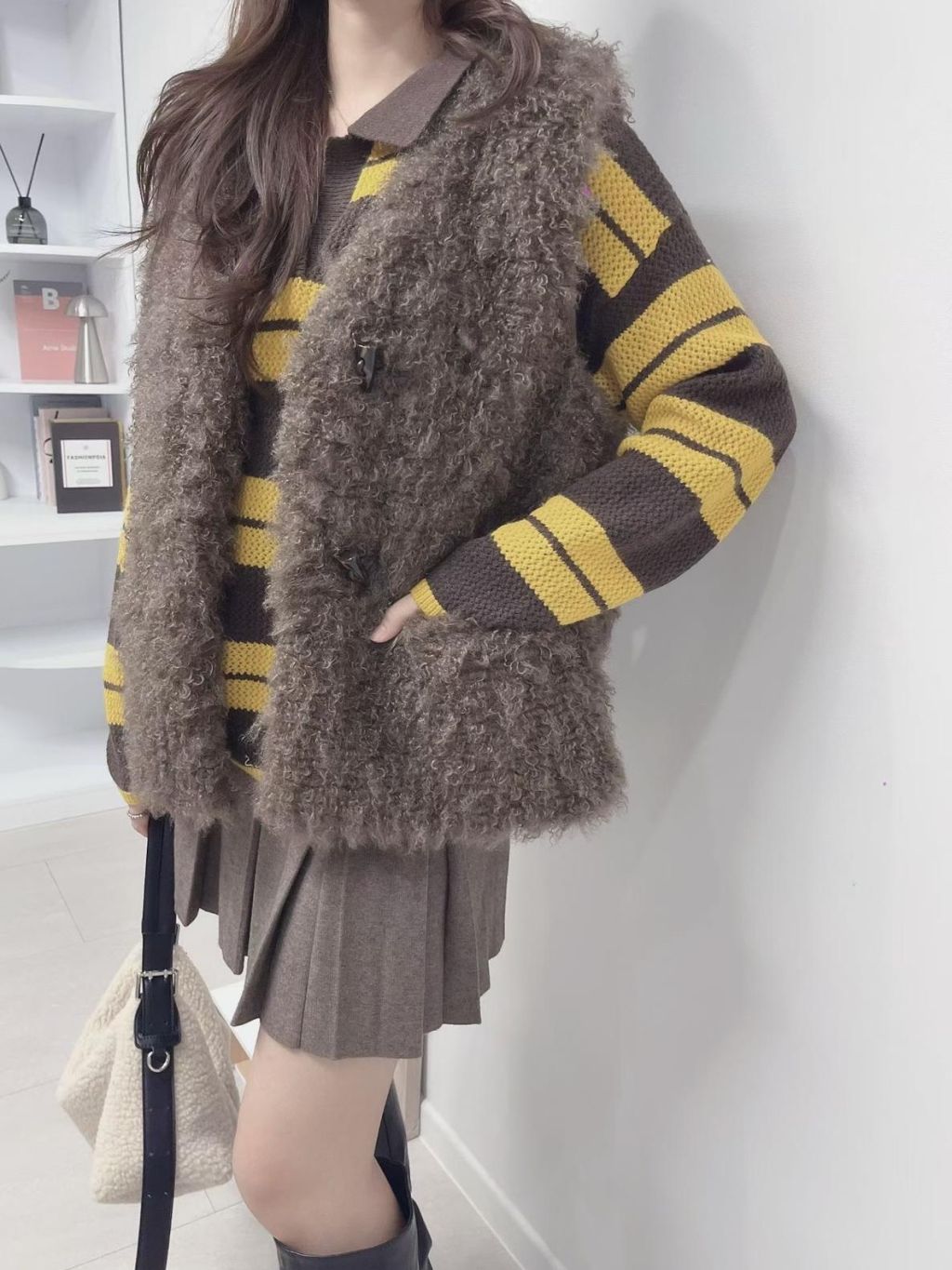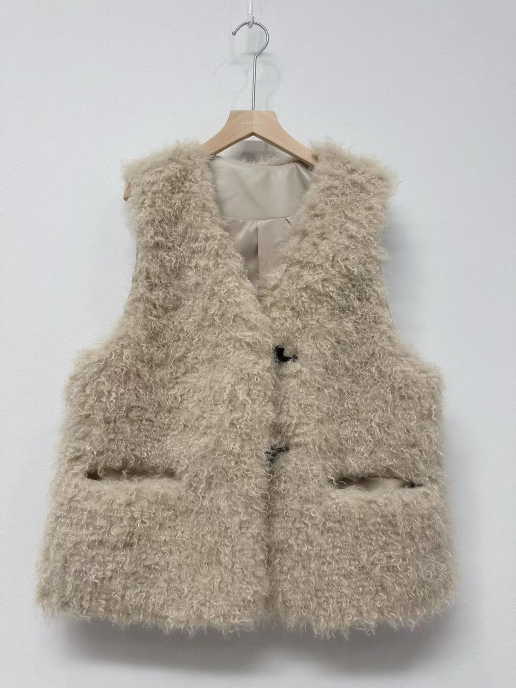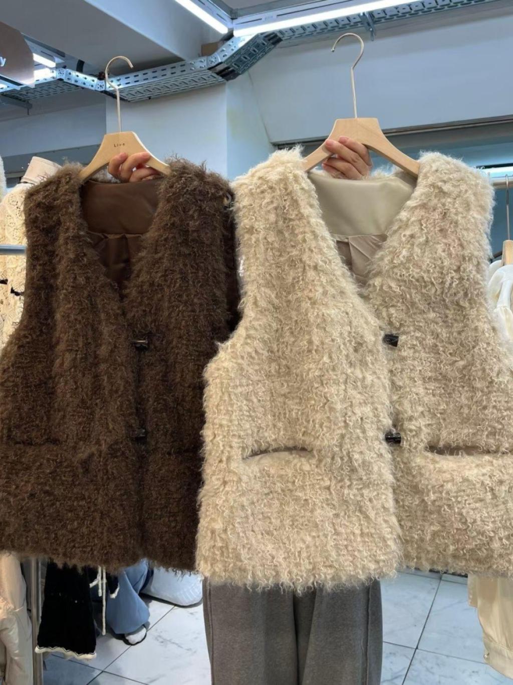 🇰🇷LU09 牛角鈕毛毛背心外套(2色)
