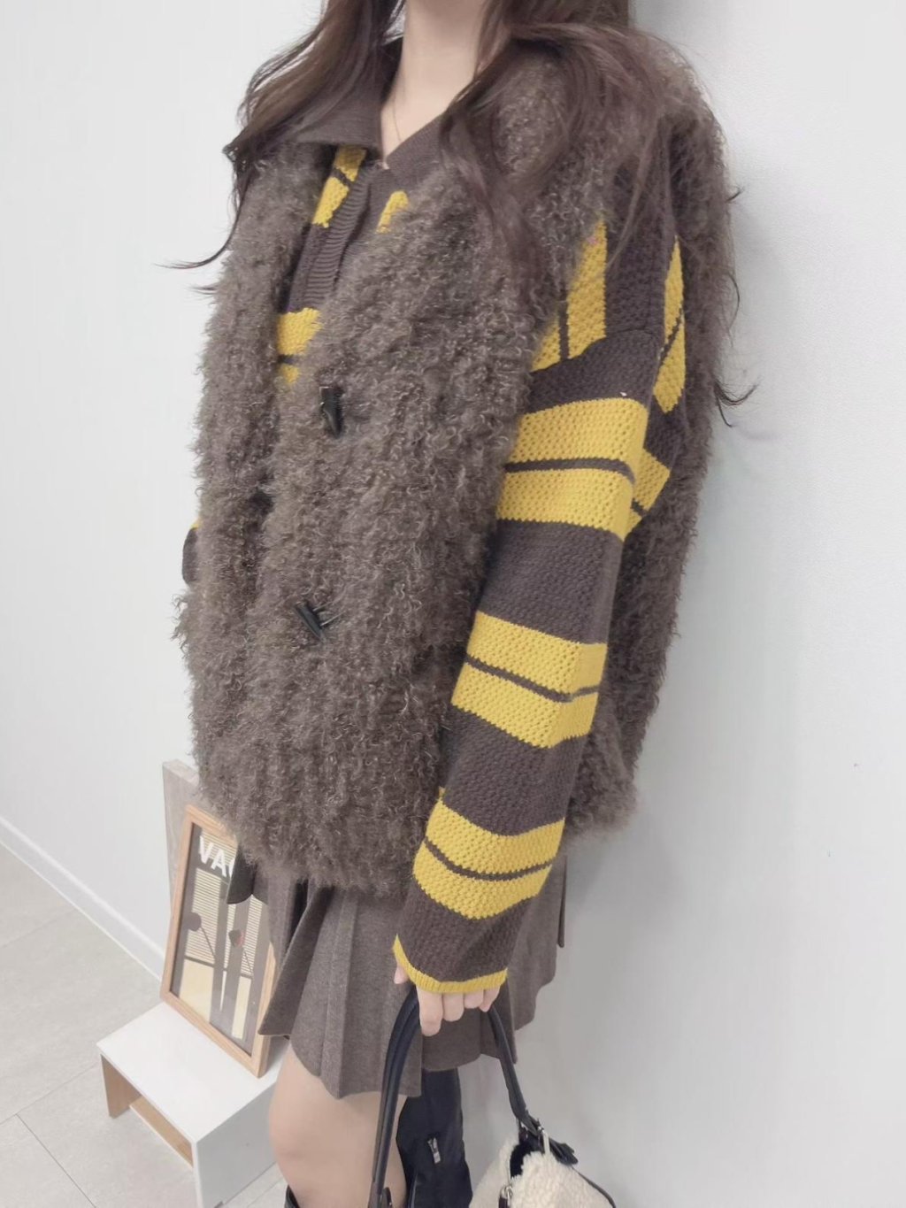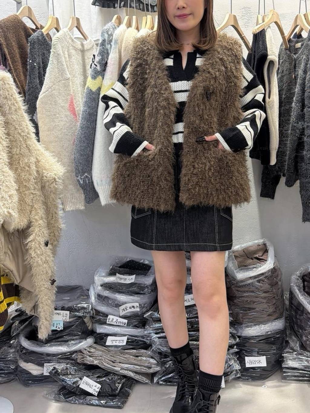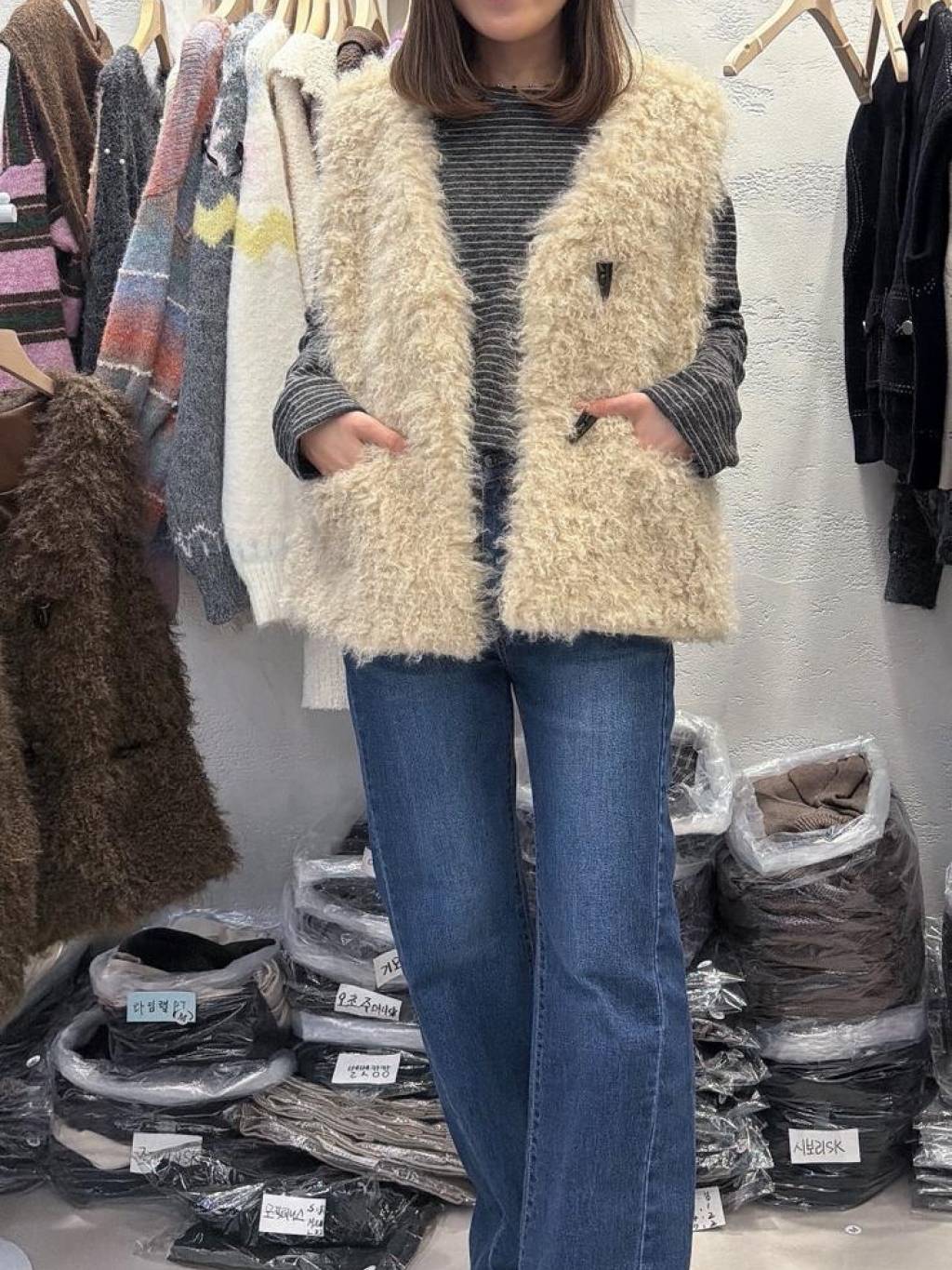 🇰🇷LU09 牛角鈕毛毛背心外套(2色)