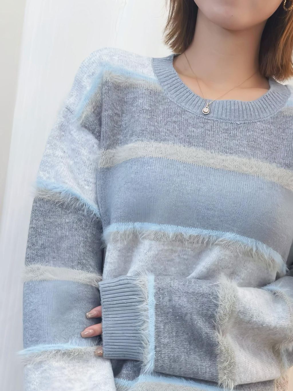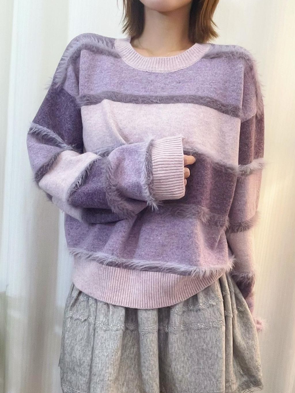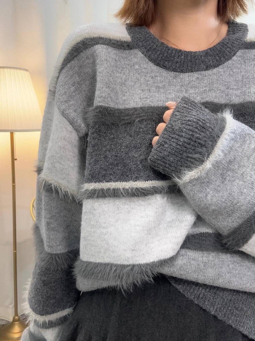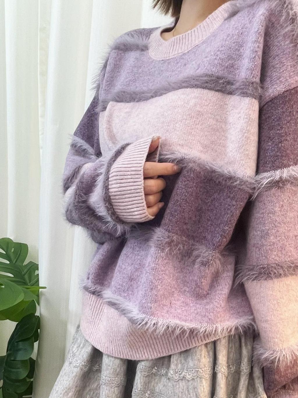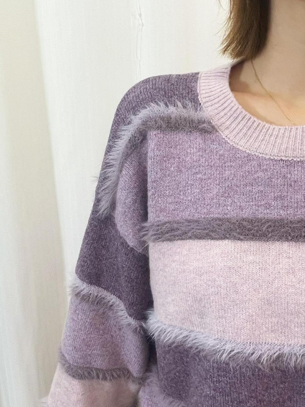 🇰🇷HU91 毛毛橫間撞色冷衫(3色)