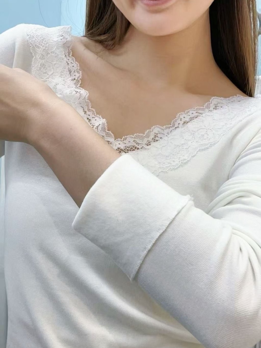 🇰🇷HU105 前後V領lace邊打底係簿絨(2色)