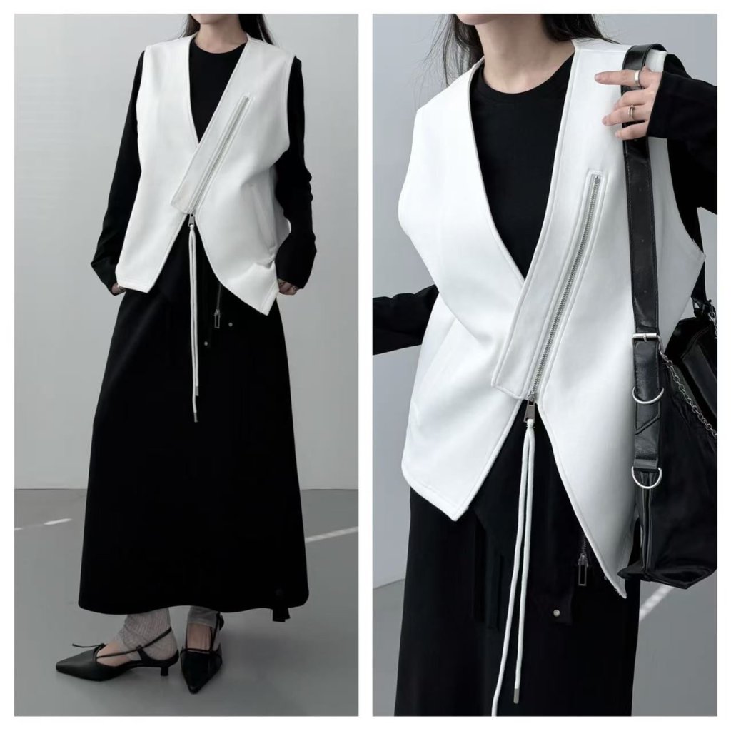 主頁 🇰🇷BE02 V領拉鍊不規則背心外搭(2色)