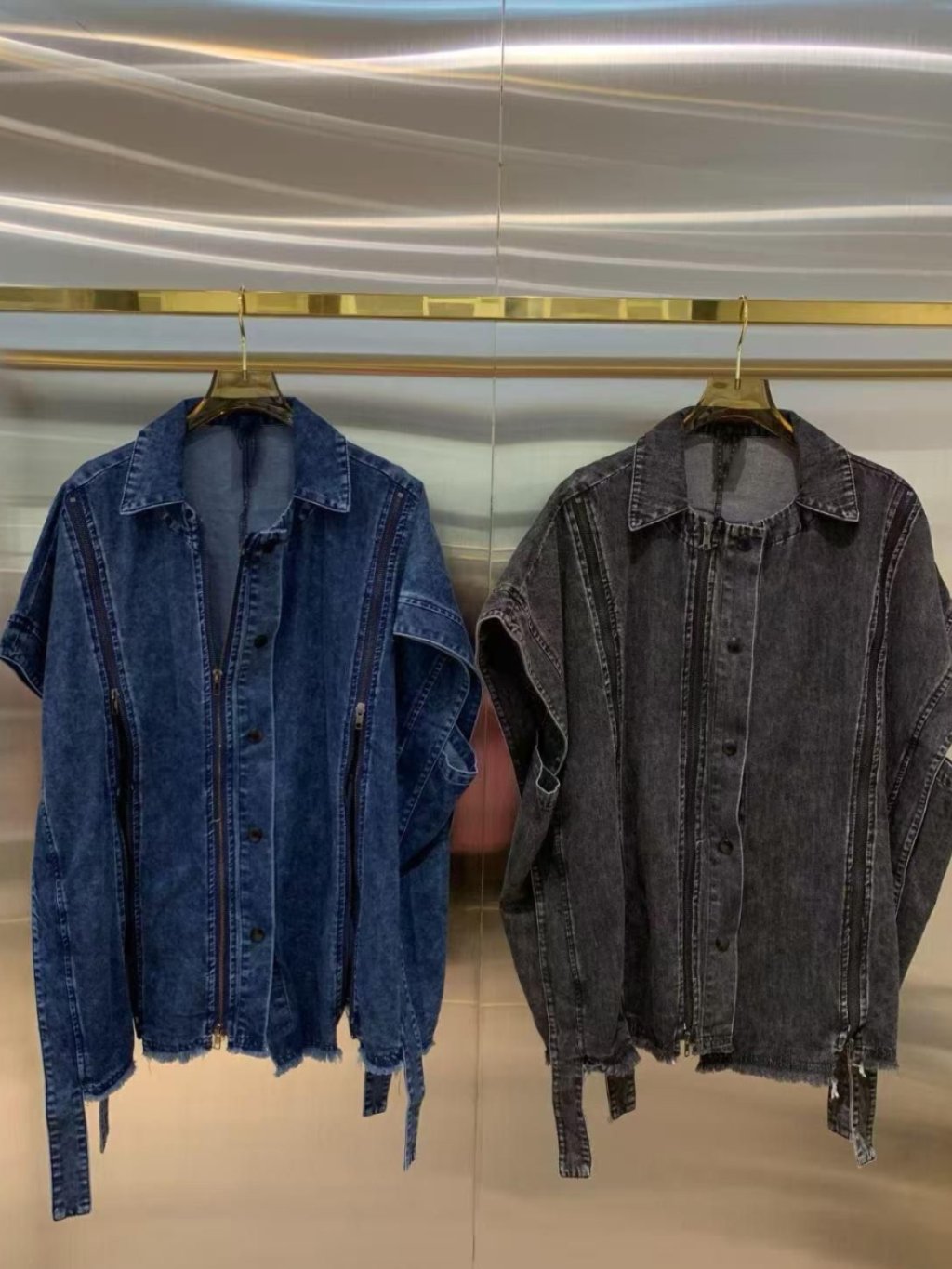 🇰🇷LC07 洗水牛仔拉鍊短袖外套(2色)