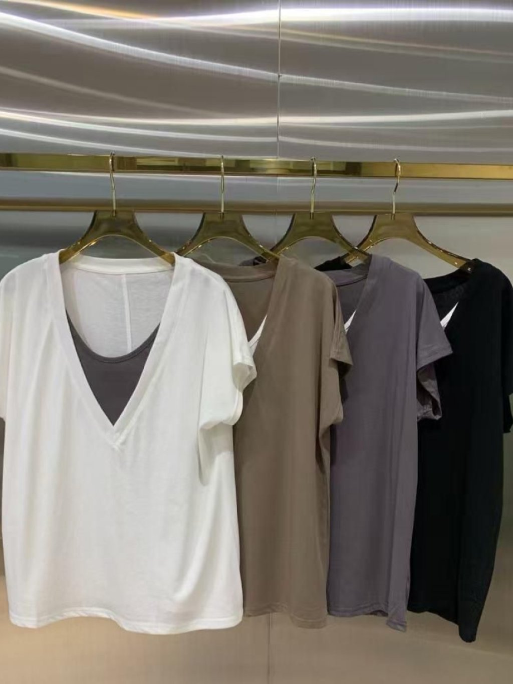 主頁 🇰🇷LC18 深V領假兩件寬鬆短袖T恤(4色)