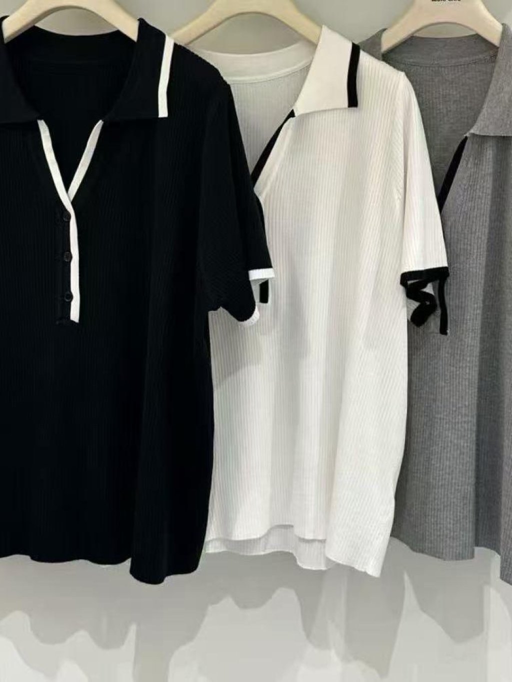🇰🇷LC19 撞色翻領顯瘦短袖上衣(3色)