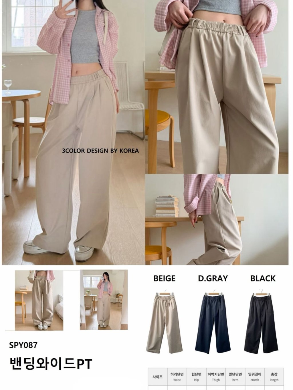 🇰🇷SF09 橡筋腰直筒闊腳褲(3色)