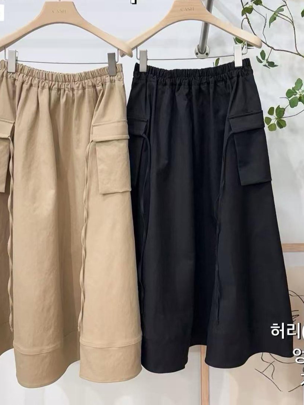 🇰🇷CA16 全橡筋腰工裝袋長裙(2色)