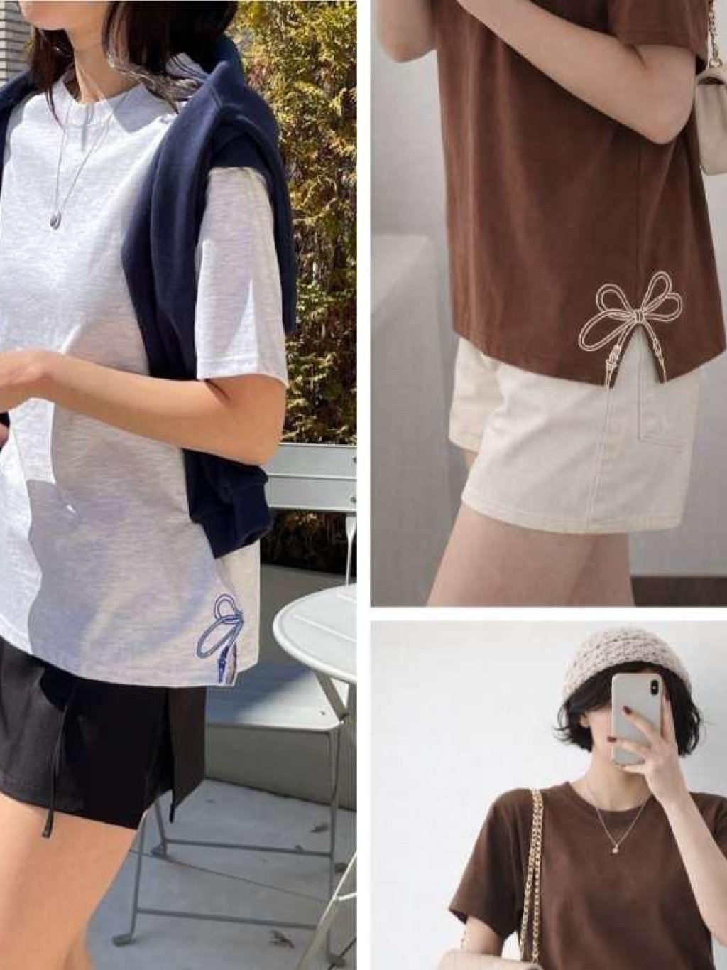 🇰🇷FW12 刺繡蝴蝶結開叉TOP(2色)