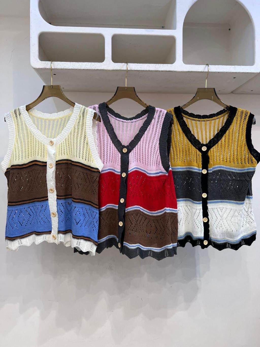 🇰🇷LC23 拼色針織扣鈕背心(3色)