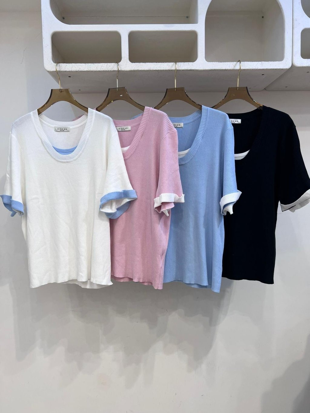 🇰🇷LC28 拼色假兩件圓領T恤(4色)