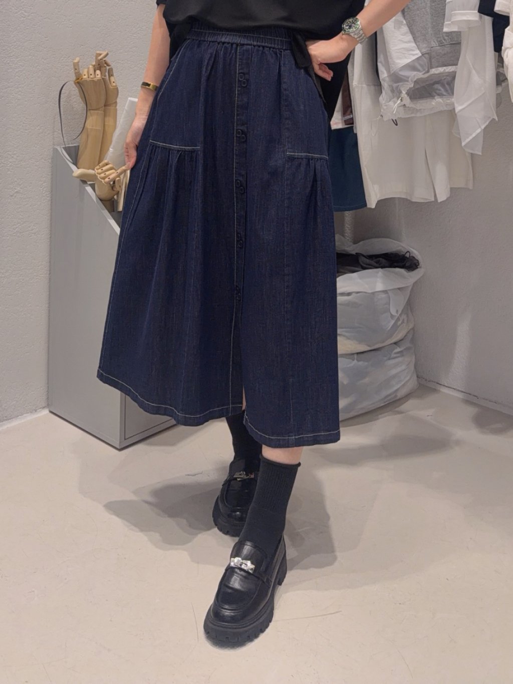 🇰🇷MO02 全橡筋腰明線排鈕牛仔裙❌福利價不參與減錢優惠❌