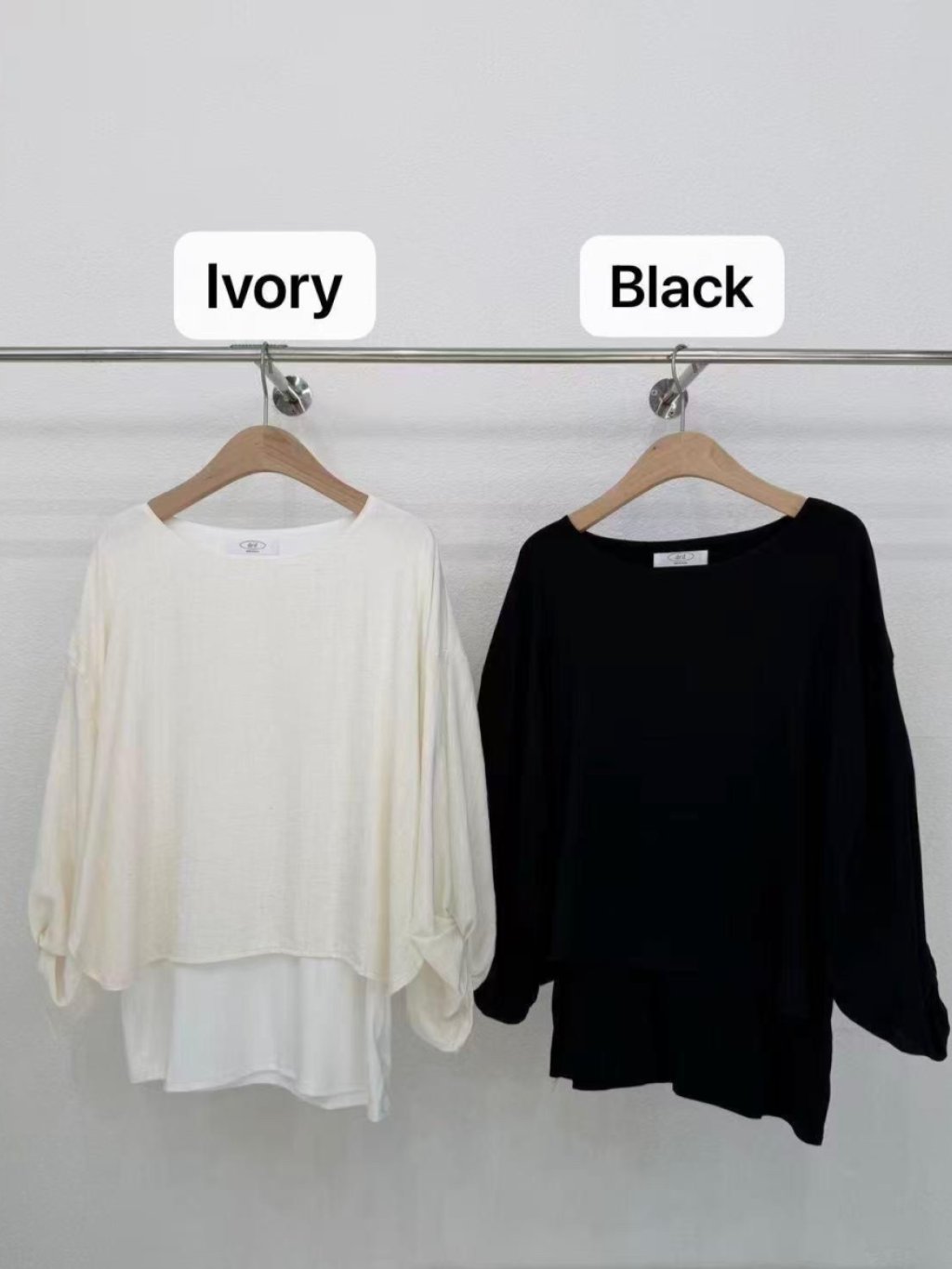 🇰🇷MO13 泡泡手袖假兩件TOP(2色)