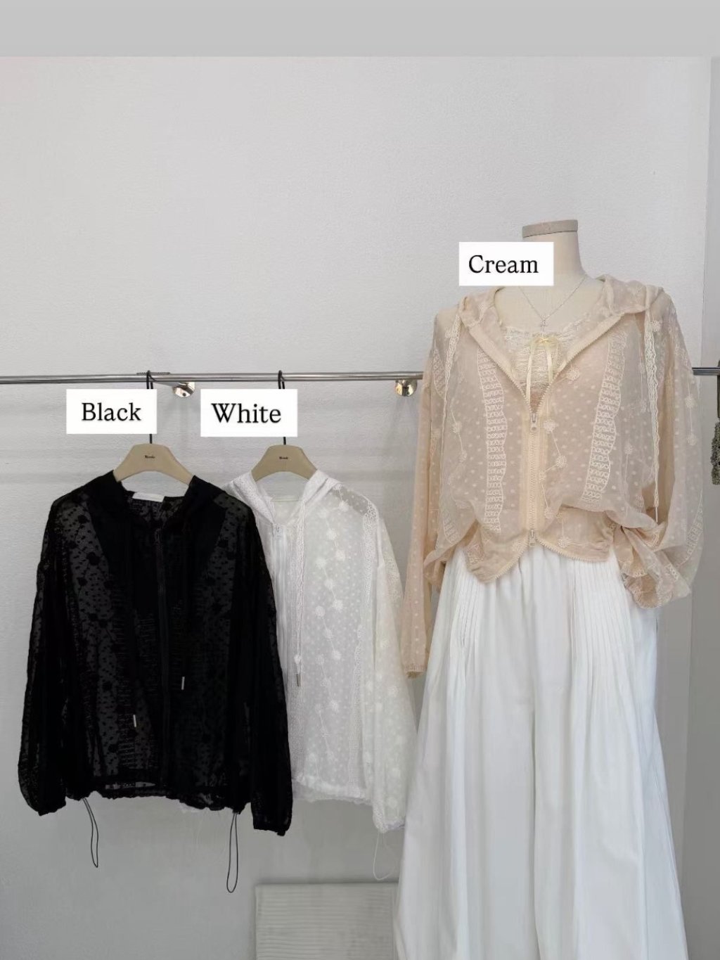 🇰🇷MO21 有帽勾花拉鍊外套(3色)