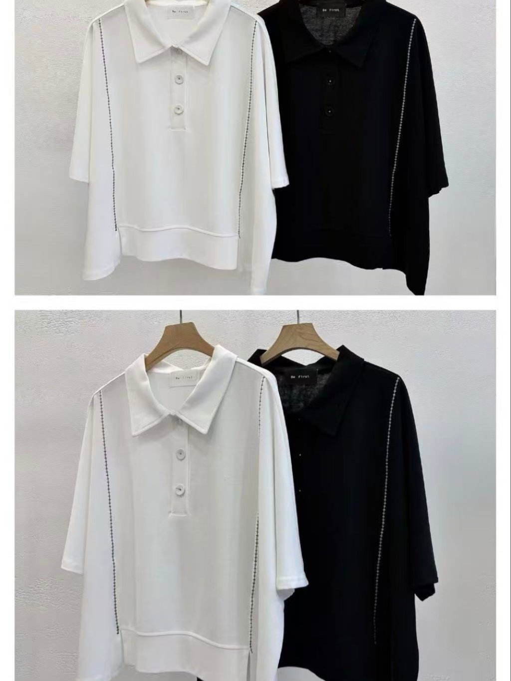 🇰🇷BE13 POLO領明線開叉TOP(2色)