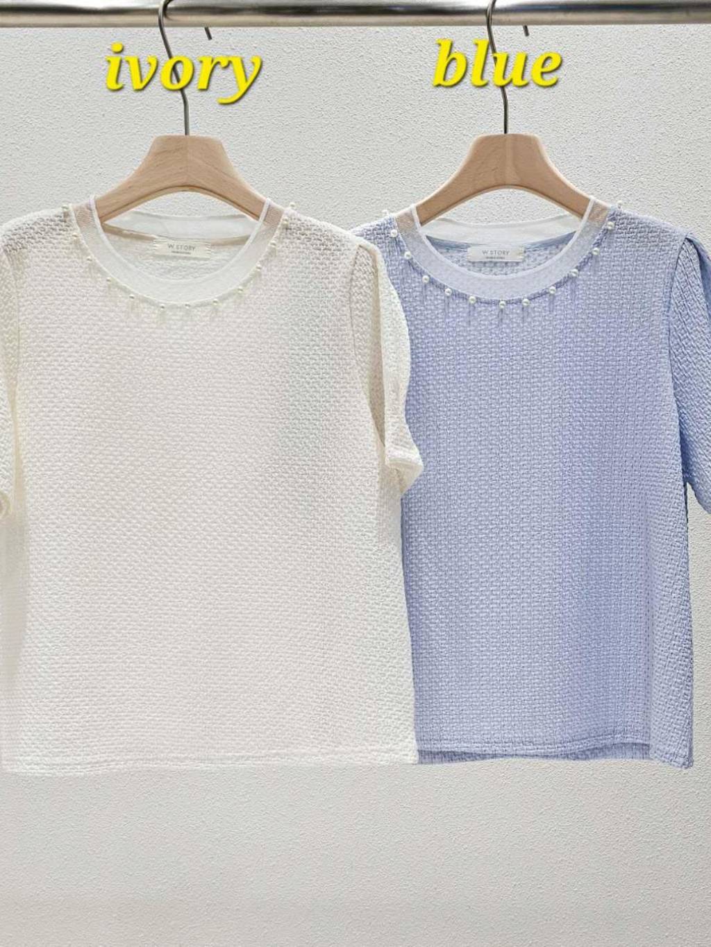 🇰🇷WS09 See through珍珠領暗紋TOP(2色)