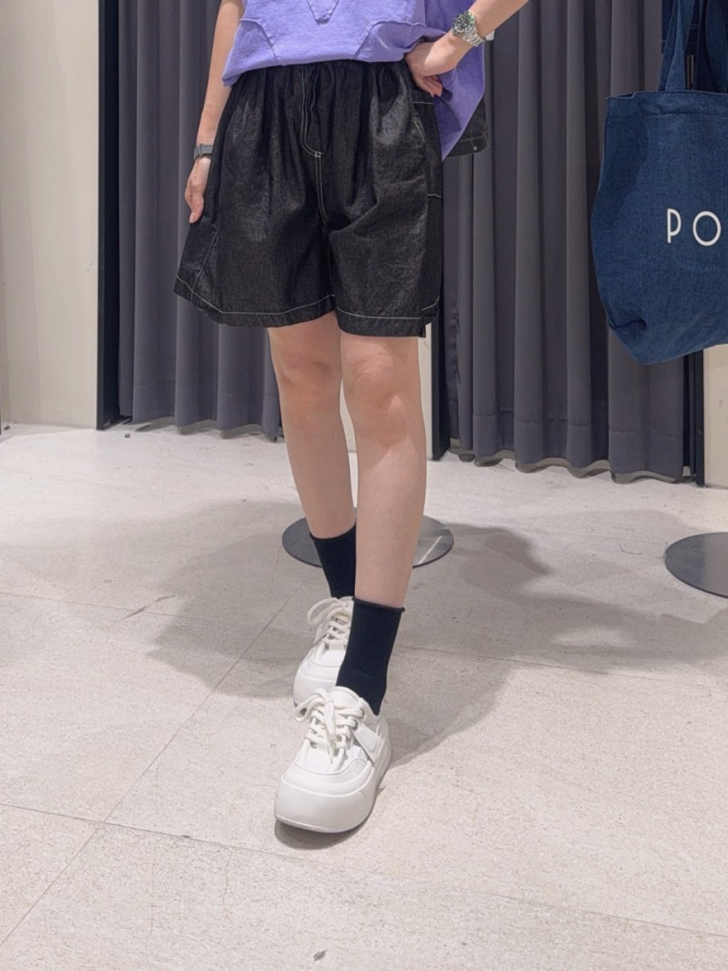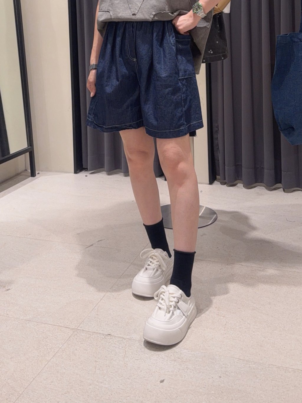 主頁 🇰🇷PO46 全橡筋腰薄牛仔短褲(2色)